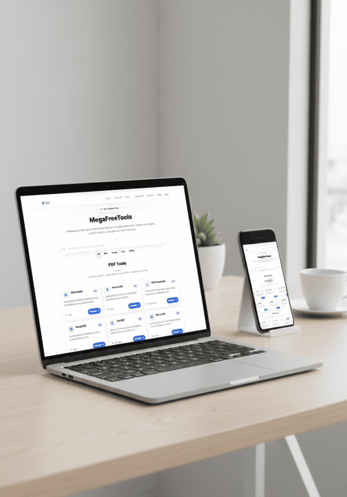 Mega Free Tools is a comprehensive online productivity platform providing instant access to 100+ professional-grade tools spanning multiple categories including text manipulation utilities, image editing and optimization tools, SEO analysis and optimization solutions, code minification and formatters, financial calculators and currency converters, unit conversion calculators, password generators and security tools, hash generators and encryption utilities, color palette generators and design tools, PDF converters and document processors, social media content generators, developer utilities and debugging tools, marketing automation helpers, and data analysis instruments—all available through intuitive browser-based interfaces requiring zero downloads, installations, or account registrations with instant tool loading, one-click access from organized category browsing, powerful search functionality finding tools by name or function, bookmark-friendly direct URLs for frequently used tools, mobile-responsive designs working perfectly on smartphones and tablets, privacy-protected processing handling sensitive data locally without server uploads, and completely free unlimited usage without subscriptions, premium tiers, or hidden costs. This powerful productivity ecosystem enables professionals, students, developers, marketers, designers, and everyday users to accomplish tasks efficiently through specialized tools eliminating need for expensive software licenses, complex application installations, or technical expertise while delivering enterprise-grade accuracy, reliability, and performance accessible instantly from any device anywhere worldwide through simple web browsers.